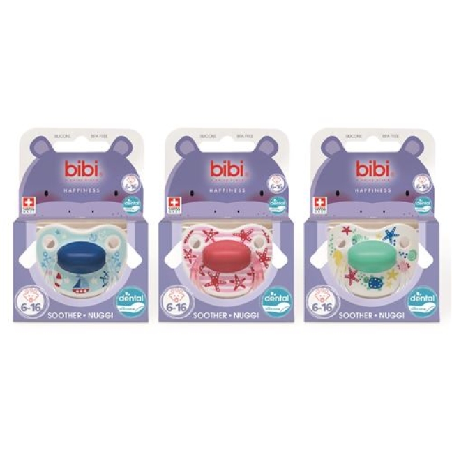 Биби Nuggi Happiness Densil является мягкая соска для естественного развития неба и челюсти. Асимметричную форму, но все равно похож на груди. Зуб Размер 6-16 Месяцев.