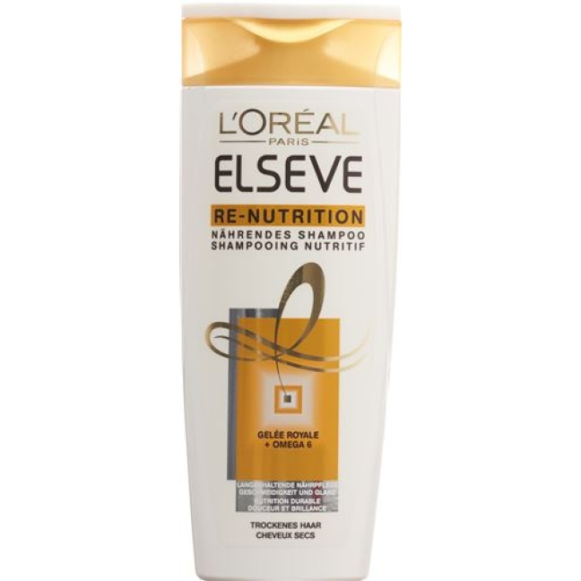 Elseve Re-Nutrition Shampoo насыщает сухие волосы затянувшийся с маточным молочком и Омега 6 для большей гладкости и блеска.