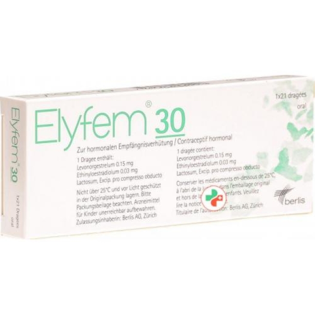 Элифем 30 - это лекарство для гормональной контрацепции, так называемый комбинированный гормональный контрацептив (КГК) или «таблетка». Каждое драже содержит небольшое количество двух разных женских гормонов, а именно левоноргестрел в качестве прогестагена (лютеиновый гормон) и этинилэстрадиол в качестве эстрогена. Элифем 30 представляет собой так называемый однофазный препарат, поскольку все таблетки с покрытием содержат два гормона в равных количествах.
