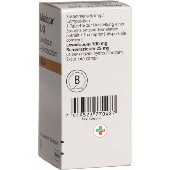 Капсулы Мадопар «62,5» (сине-светло-серый) и «125» (сине-розовый), таблетки «125» (розовый) и «250» (розовый), Мадопар ЛИК «62,5» (бежевый) и «125 »(Бежевый) (таблетки для перорального применения: 50 + 12,5 и 100 + 25) и Madopar ДР« 250 »(розовый) (с двухфазным высвобождением действующего вещества: 200 + 50) содержат леводопу и бенсеразид в соотношении 4: 1 (пример Мадопара «125»: 100 мг леводопы и 25 мг бенсеразида).