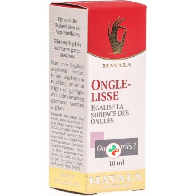 Из Mavala для ногтей терка устраняет неровности ногтя путем выравнивает бороздки на ногтевую пластину и обеспечивает равномерное, гладкой поверхности ногтя образуется.
