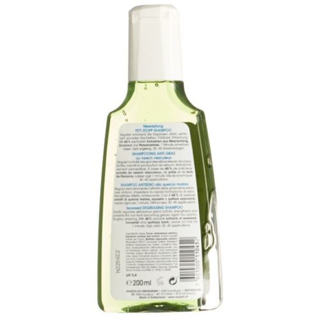 Шумовой Meerestang ЖИР-СТОП шампунь с 40% растительных экстрактов регулирует работу сальных желез и бережно предотвращая быстрая снова смажьте. Она включает в себя ценные экстракты Meerestang, хвоща и коры Панама.