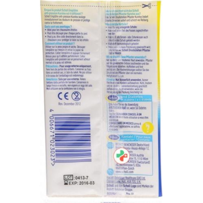 Scholl пролежней пластырь-Kurotex защищает от трения давление и снимает боль сразу. Может быть адаптирована к любой части ноги и, напр., как пятки или пальцы ног подушки приклеиваются прямо в ботинок.