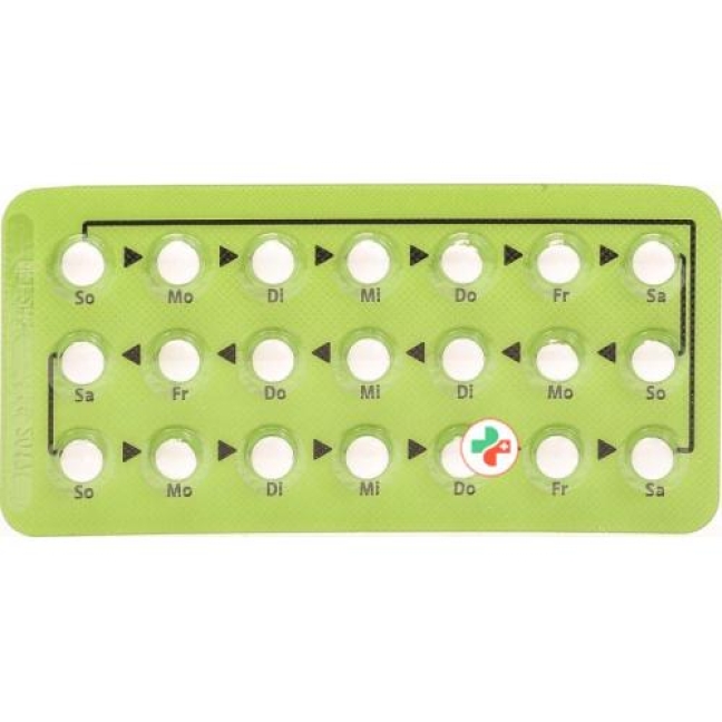 Календарь содержит 21 драже. День недели указан на упаковке каждого драже. Возьмите 1 драже из календарного пакета с поля соответствующего дня недели (например, «Пн» на понедельник), протолкнув его через алюминиевую фольгу и проглотив его целиком с жидкостью. Время дня не имеет значения, но вы должны придерживаться выбранного часа. Принимайте таблетки в одно и то же время каждый день и следуйте указаниям стрелки, пока не будут приняты все 21 таблетка. Не принимайте таблетки в течение следующих 7 дней. В эти 7 дней менструальный период (абстинентное кровотечение) должен начинаться через 2-3 дня после приема последней таблетки. Начните следующий набор на 8-й день, даже если кровотечение все еще продолжается. Это означает,